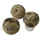 Let's go fishing! Decorative fishing trap made of braided wicker with an inverted funnel-shaped armor inside which baits are placed to catch the fish, especially rock fish. Nice object of nautical decoration.