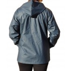 Nautical raincoat for men and women with hood and closed seams. Light, warm and comfortable, Closes with a zip. Composition: 50% polyurethane, 50% PVC.