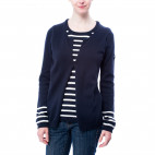 Nautical shirt with white and navy blue stripes amd 3/4 length sleeves. Elegant cut on the sleeves. Composition : 100% Cotton.