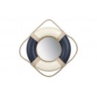 Rustic lifeguard mirror. Made in porexpan inside and covered with waxed canvas. With a hemp rope tied around it.