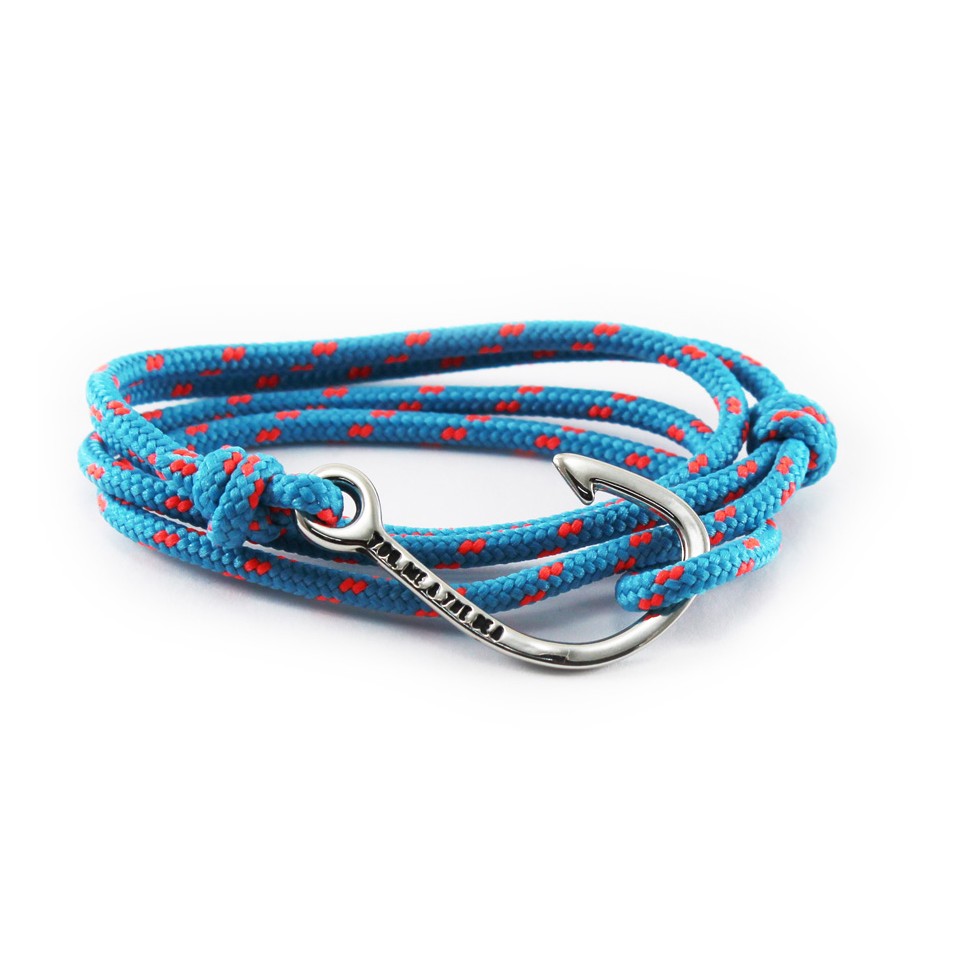 Its simplicity and nautical character give it an elegant, modern and timeless style. Polished hook engraved YOU ME & THE SEA, hypoallergenic, composed of Zamak. The nautical rope is made of textured polyester. This type of material is known for is vast durability, it is used for sailing and climbing. Each rope is 73cm long. It fits perfectly around...