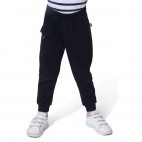 Girl's elegant and sporty trousers in navy blue. Composition: 80% viscose, 16% polyamide, 4% elastane.