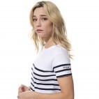 Women's nautical white and red striped t-shirt with round neck. A basic for your summer wardrobe. Composition : 100% Cotton.