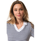 Discover elegance and timeless style with this white and navy blue striped Hublot Mode Marine dress.