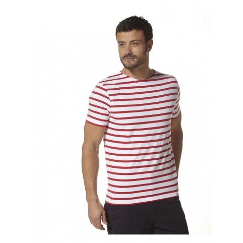 Camiseta marinera de rayas blanco y rojo de manga corta con cuello redondo. Un básico en tu armario. Composición : 100% algodón.