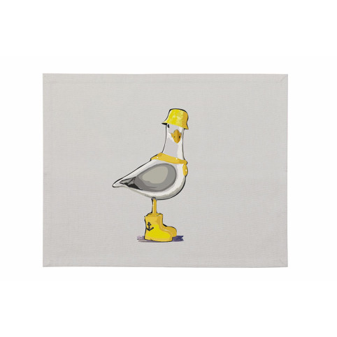 ¡El mar en tu cocina! Mantel individual de estilo marino con el diseño de una original y humorística gaviota marina con botas de agua impresa. Este mantel individual de cocina está confeccionado en algodón 100% y mide aproximadamente 45x36 cm.