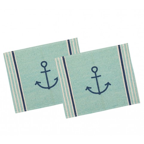 Dos manteles individuales de 45x36cm con un estampado marinero de un ancla. Composición : 100% algodón.