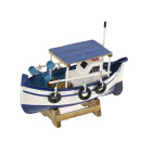 Alegra tu casa dándole un toque marino con estos dos pesqueros de estilo naif. La ventanas de la cabina del barco se iluminan con una luz cálida de led. Barcos en madera pintados a mano. Se venden en conjuntos de 2 barcos. El precio es unitario. Funciona con dos pilas AA no incluídas.