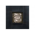 Cuadro de decoración náutica de madera. En él se destaca la figura de un pez y conchas de mar realizadas en resina patinadas a mano.