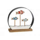 Banco de peces de colores marinos rojo, azul cielo y azul marino. Original objeto decorativo de inspiración marinera. Te encantará ! Realizado en madera y pintado a mano. El aro es de metal.