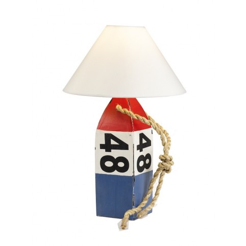 Ilumina tu casa con esta bonita lámpara baliza inspirada de las boyas de balizamiento marítimas flotantes. Lámpara náutica decorativa de madera de la que cuelga una cuerda de algodón, pintada y decorada a mano con un ancla marinera. Llévatela, te encantará ! Se entrega con la pantalla.