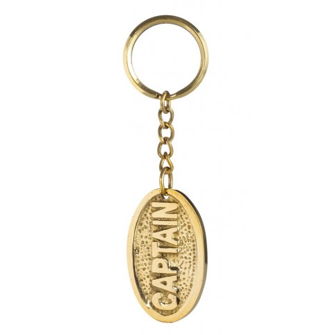 Llavero náutico "CAPTAIN" montado con una cadenita y un aro en latón.