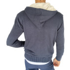 Chaqueta - sudadera de punto para hombre doblada con capucha. Interior muy cálido. Cierre con cremallera y brandeburg.