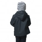 Preciosa capa de lluvia para bebé, doblada con polar marino de rayas y estampada con bonitos motivos náuticos. Con la capucha polar y el cierre con cremallera, tu bebé estará protegido del frío y la lluvia. Composición : 100% poliuretano.