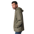 Chubasquero unisex de estilo pescador de color verde kaki doblado en su interior. Ligero y confortable, podrás llevarlo a diario o navegando. Doble cierre con cremallera y botones a presión y con su capucha ajustable.