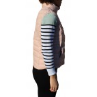 Chaleco plumífero para mujer con capucha en el cuello y bolsillos con cremallera. Práctico y cómodo, queda ideal con un jersey a rayas marineras.