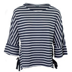 Bonita blusa de estilo náutico y rayas azul marino y blanco. Será tu prenda chic, fresca y agradable al tacto, con lazos decorativos en los laterales.