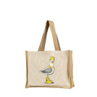 Lleva el encanto del mar contigo a todas partes con nuestra bolsa shopper de algodón con un diseño de una original y humorística gaviota marina con botas de agua impresa.