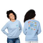 En un suave azul celeste que recuerda al cielo de verano, esta sudadera para mujeres y hombres presenta en el pecho la frase “Costa Brava, et porto dins”, y en la espalda un precioso collage en efecto acuarela con ilustraciones que capturan la esencia de nuestra costa: las gambas de Palamós, barquitas de pescadores, aceite de oliva, el sol, la brisa marina...