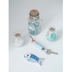 Escribe el mensaje que desees en el pergamino al interior de la botellita. Original regalo de San Valentín, Sant Jordi, aniversario, amistad... Botella de vidrio cerrada con un tapón de corcho. En su interior, un pergamino de papel rígido, conchas marinas y arena de color azul, turquesa y beige. El precio es unitario y se venden por 3 unidades.