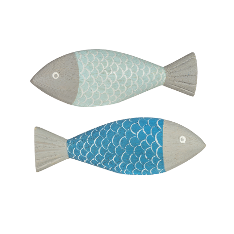 SET DE 16 PEQUEÑOS PECES DE MADERA ADHESIVOS.