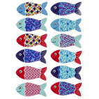 Dale un toque marino y colorido a tu nevera, pizarra o cualquier superficie metálica con este set de 12 imanes en forma de pez. Cada pieza es única, con colores y estampados fantasía que alegran cualquier rincón.