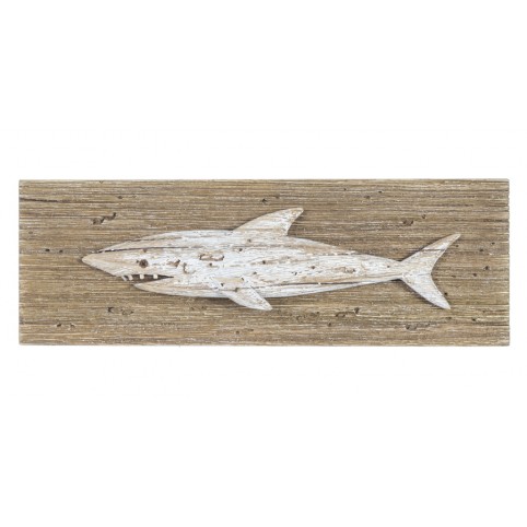 Jolie tableau de décoration nautique avec une jolie figure de requin en relief.Vous allez adorer. Il est fait de bois avec des détails en métal.