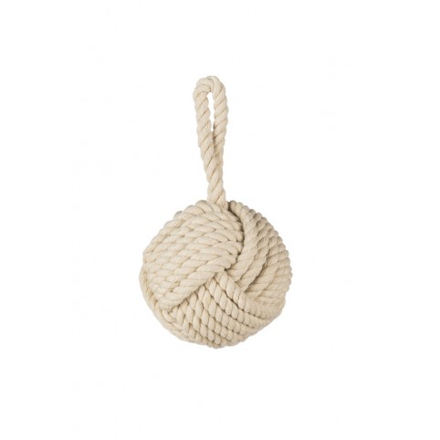 Appelée aussi poing de singe, la pomme de touline est un nœud d'arrêt, utilisé pour terminer un cordage par une boule. Ce nœud sert également à lester un cordage destiné à être lancé. Utilisé comme cale-porte, elle donnera un esprit déco bord de mer chez vous.Réalisé en coton.