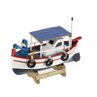 Maquette artisanale d'un bateau de pêche.Reproduction réalisée en bois peint et montée à la main.Emballage en boîte individuelle.