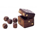 Belle boîte du jeu des 5 dés. Objet réalisé en palissandre. Les points des dés ainsi que les éléments décoratifs de la boîte sont en laiton.