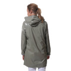 Veste imperméable nautique couleur kaki verni, doublée à l'intérieur. Fermeture à glissière et capuche ajustable.