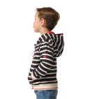 Pull style nautique pour enfants avec fermeture à glissière, capuche et poches sur les cotés. Composition: 50% coton, 50% acrylique.