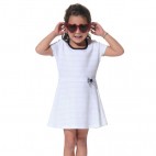Robe Hublot Mode Marine pour fille de style marin. Robe de couleur blanche avec un col bleu marine et un joli nœud sur un côté. Très belle! Composition : 100 % coton.