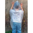 Impérmeable coupe-vent avec capuche pour homme et donne. Leger, chaud et confortable. Fermature éclair sur le devant. Composition: 50% polyurethane, 50% PVC.