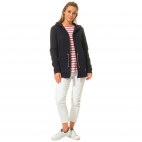 Veste zippé esprit marin pour femme avec capuche et fermeture à glissière. Élastique à la taille. De grand confort!