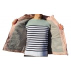 Gilt en duvet pour femme avec capuche au cou et poches zippées. Pratique et confortable, il est idéal avec un pull marinière à rayures.