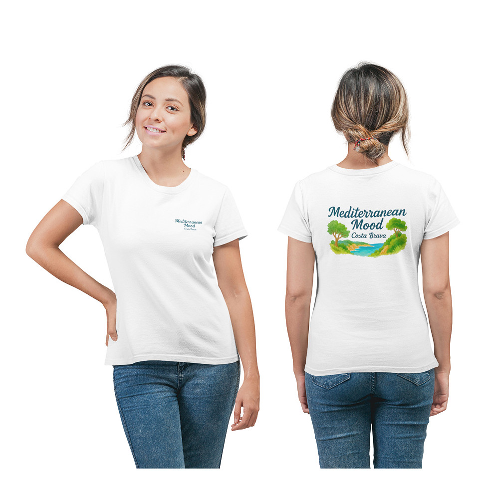 Sur la poitrine, une discrète inscription “Mediterranean Mood – Costa Brava”, et dans le dos, le même message accompagné d’un paysage qui invite à rêver de soleil, de mer et de calme.