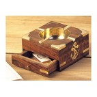 Élégant et très fonctionnel ce cendrier-boîte ! Réalisé en bois d'acacia avec des motifs nautiques en laiton. Son tiroir intérieur permet de ranger des boîtes d'allumettes.