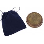 Flasque ronde en acier inoxydable décorée d'une rose des vents. Vernis alimentaire intérieur pour une meilleure conservation. Livrée avec une belle pochette en velours.Capacité : 133 ml.
