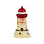 Le phare de Saint-Mathieu, situé sur la pointe Saint-Mathieu, à Plougonvelin (Finistère) fut construit en 1835 dans les ruines d'une ancienne abbaye. C'est un phare majeur de la côte française dont la portée théorique est d'environ 55 km.Phare en tôle d'acier. Il peut être éclairé avec une bougie LED à l’intérieur (non fournie). Réalisé et peint à la main.