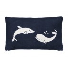 COUSSIN NAUTIQUE "DAUPHIN ET BALEINE". Coussin design nautique tissé avec du coton de qualité supérieure.